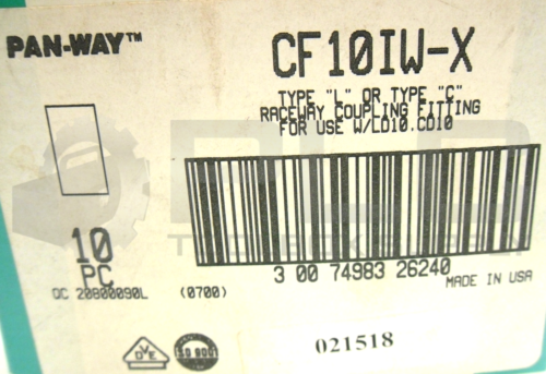 NEW BOX OF 10 PANDUIT CF10IW-X RACEWAY COUPLING FITTING TYLE "L" OR "C"