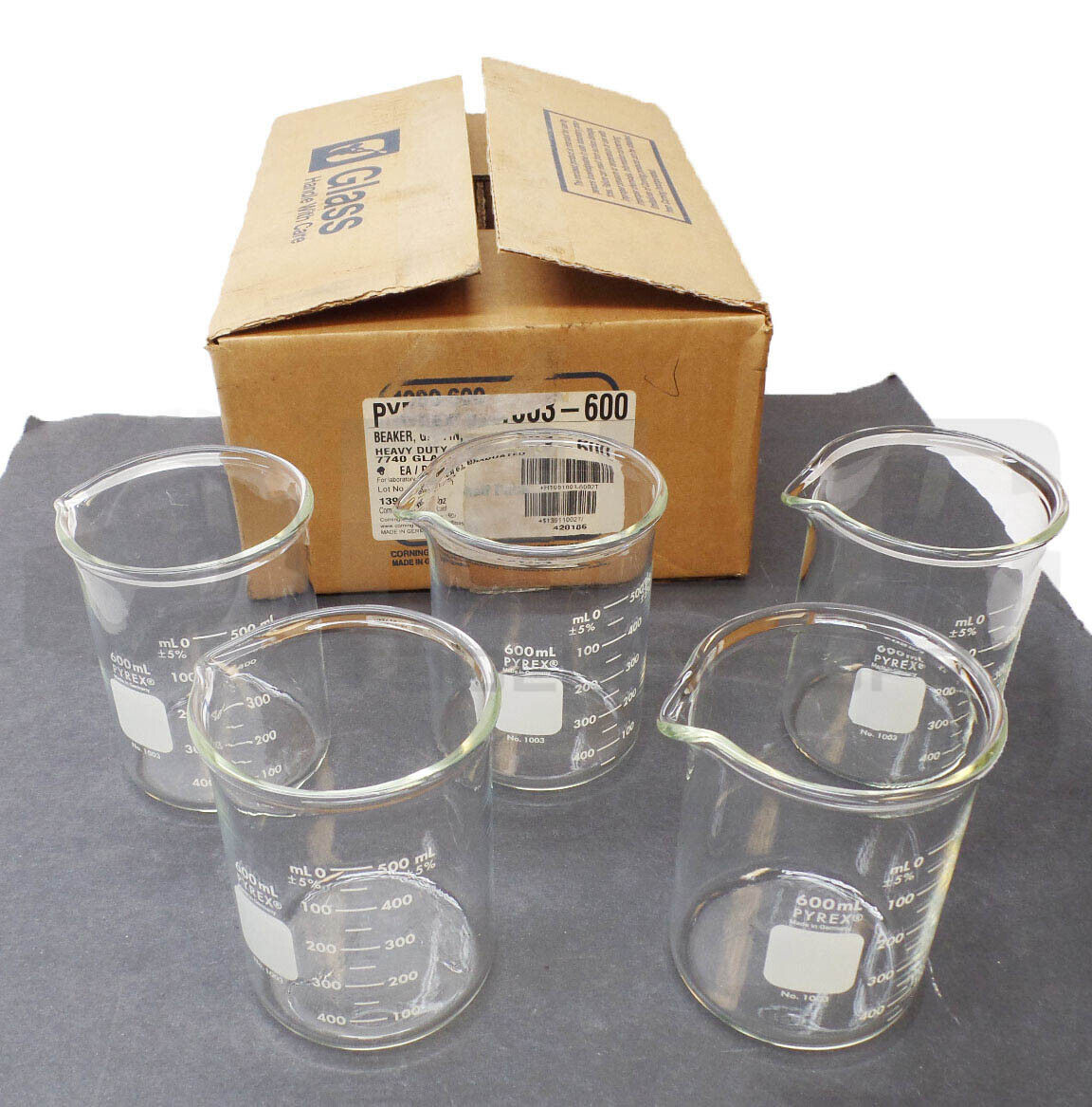 • NEW BOX OF 5 PYREX 1003-600 HEAVY DUTY GRIFFIN BEAKER GRADUATED 1003