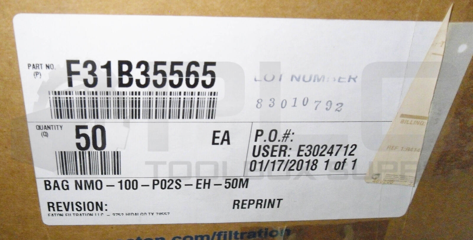 • NEW BOX OF 50 EATON F31B35565 STARCH BAG FILTER ELEMENTS NMO-100-PO2S-EH-50M