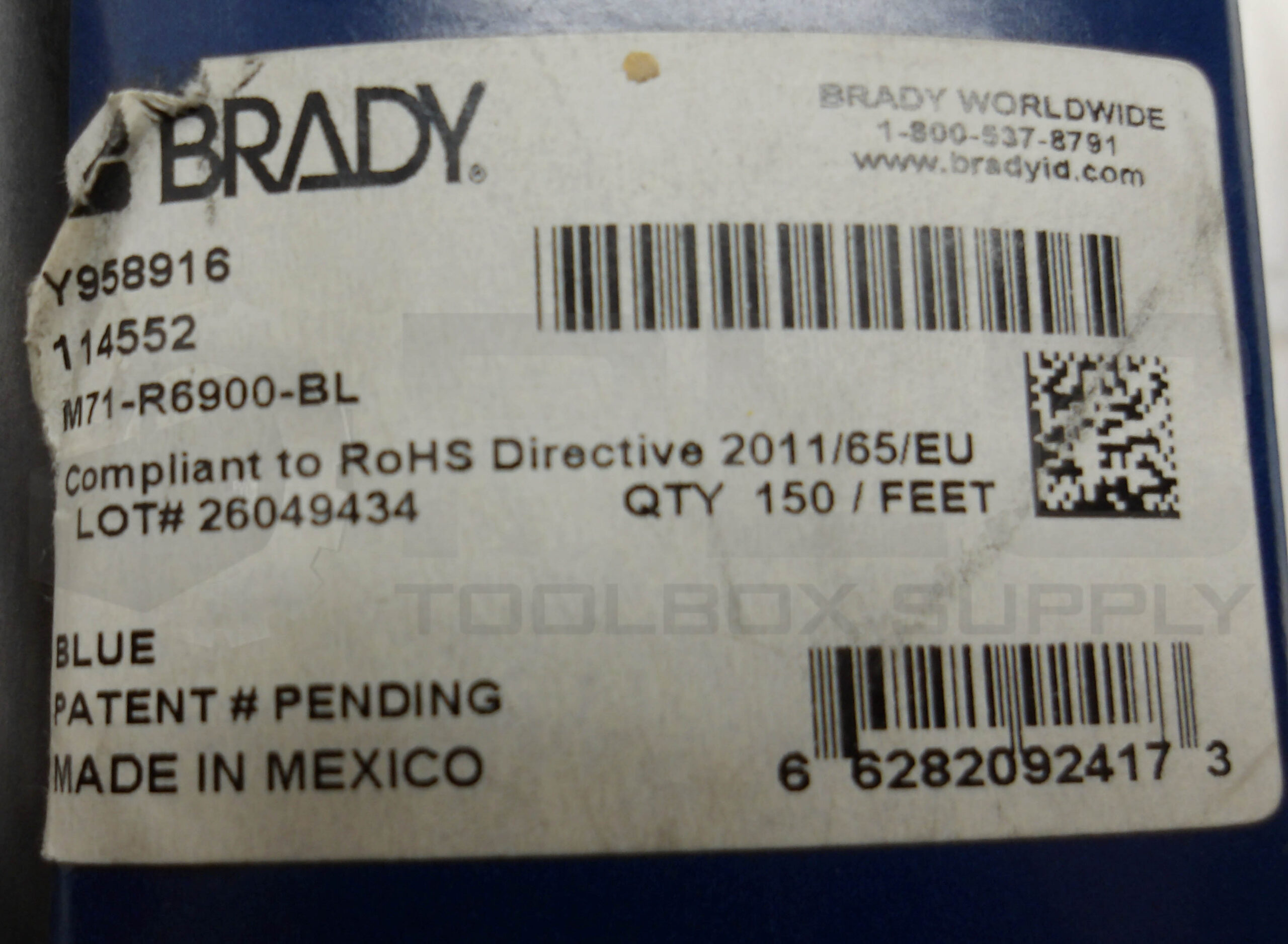 NEW BRADY M71-R6900-BL RIBBON CARTRIDGE BLUE 2″ X 150′ 114552