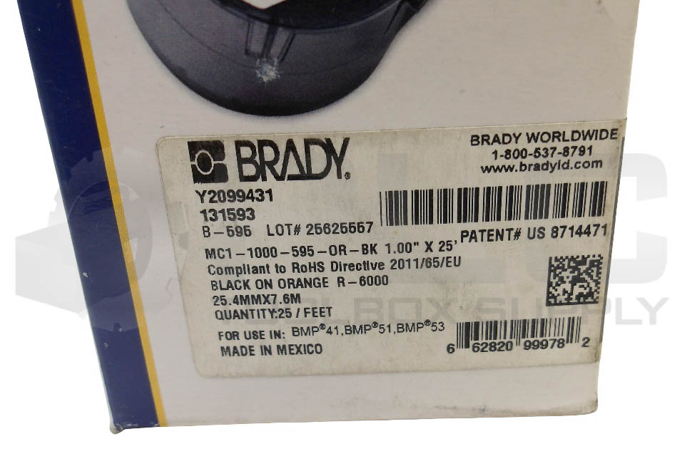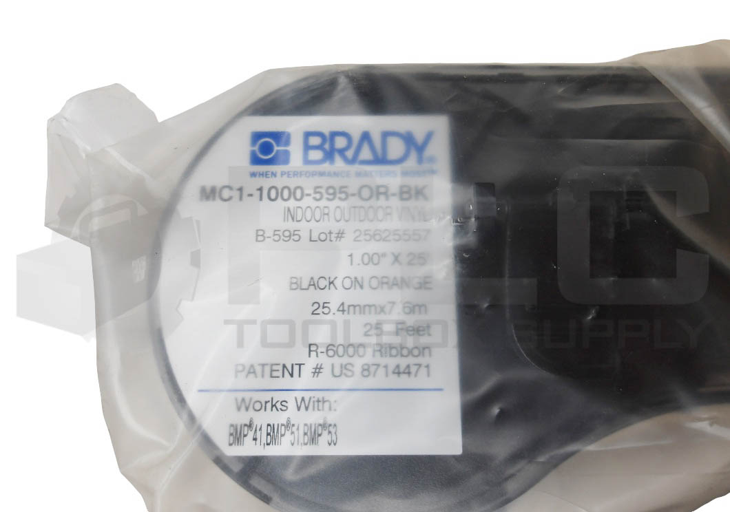NEW BRADY MC1-1000-595-OR-BK VINYL LABELS BLACK ON ORANGE 1″ X 25′