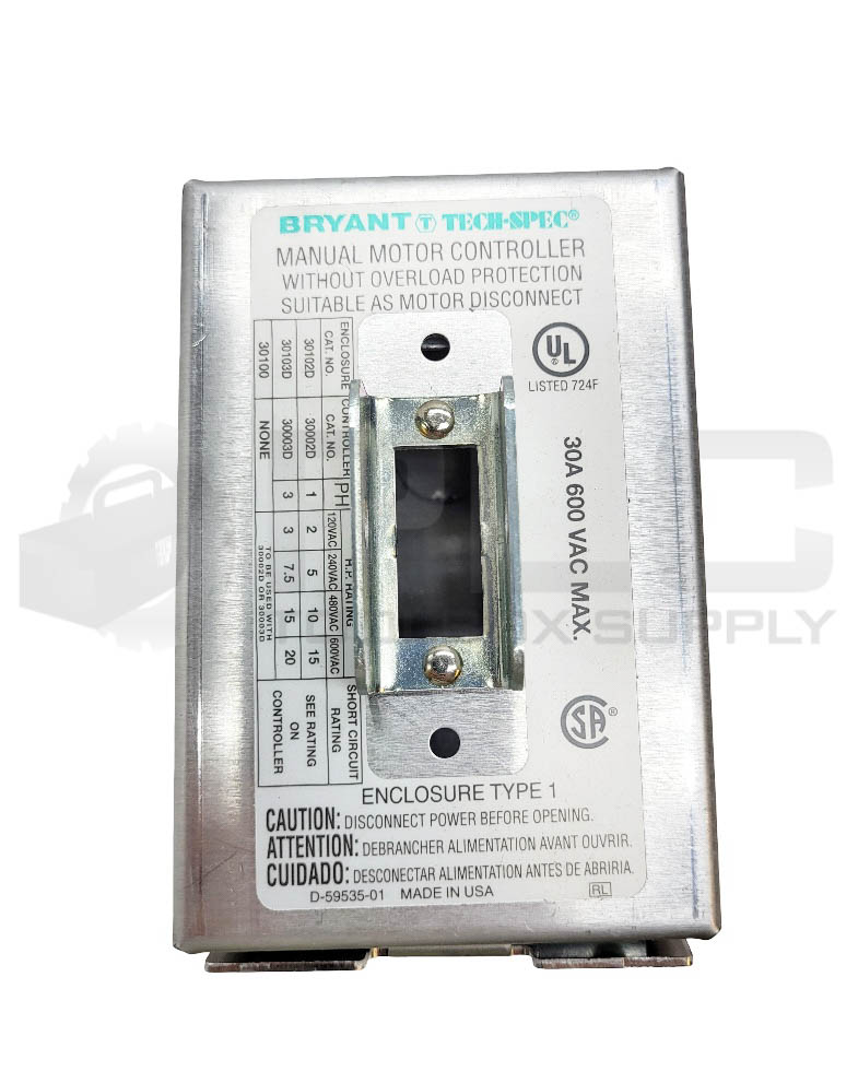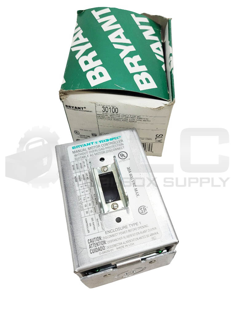 NEW BRYANT 30100 STARTER SWITCH 30A 600VAC NEMA 1R *ENCLOSURE ONLY*