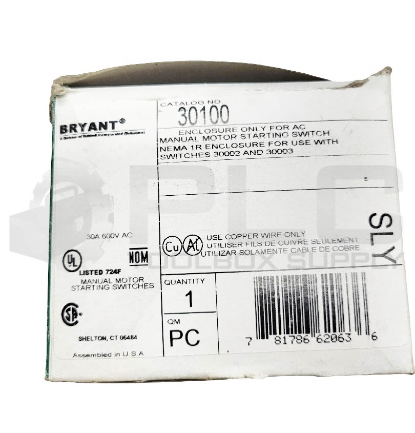 • NEW BRYANT 30100 STARTER SWITCH 30A 600VAC NEMA 1R *ENCLOSURE ONLY*