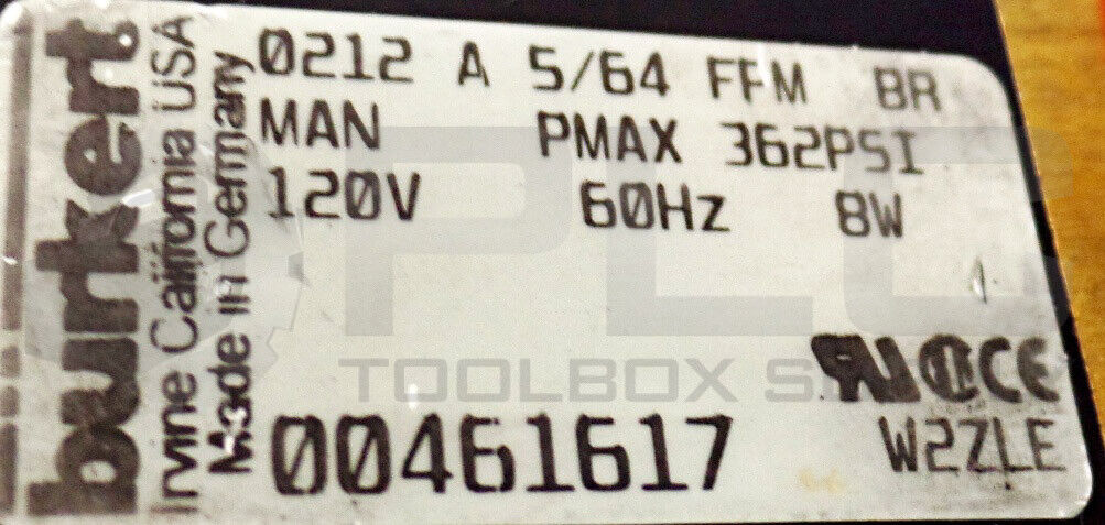 • NEW BURKERT 00461617 SOLENOID VALVE, 120V 60Hz 8W, 0212 A 5/64FPM BR