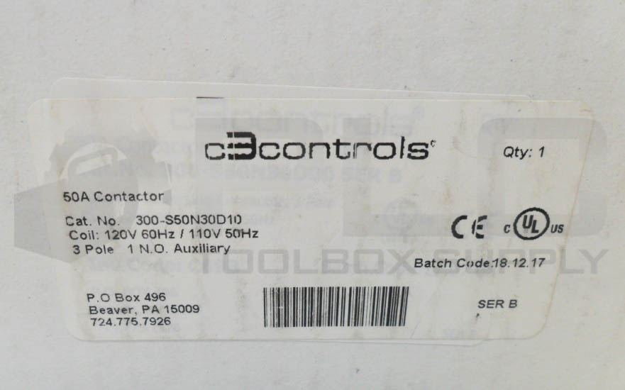 NEW C3 CONTROLS 300-S50N30D10 CONTACTOR 10-120V 50/60HZ 3P 50A