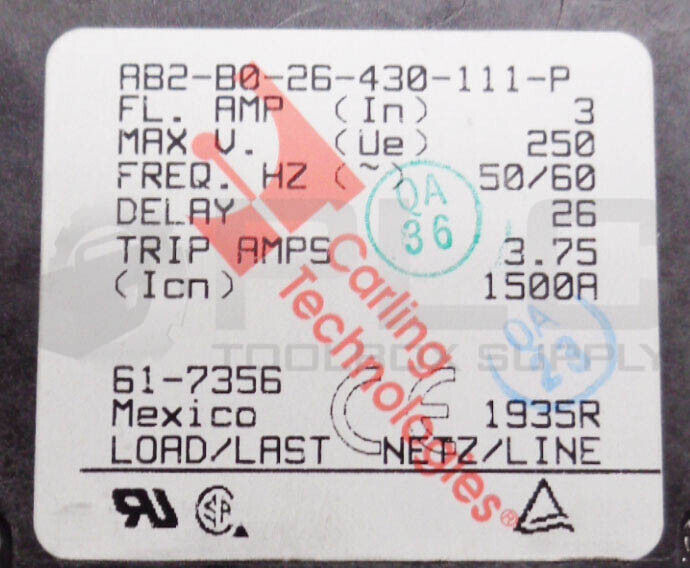• NEW CARLING TECHNOLOGIES AB2-B0-26-430-111-P CIRCUIT BREAKER SWITCH 2P 3A 250V