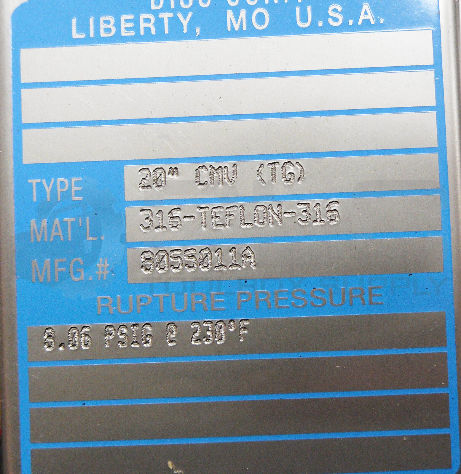 • NEW CONTINENTAL DISC CO 8805011A RUPTURE DISC 20" CMV 316-TEFLON-316 8.06PSIG