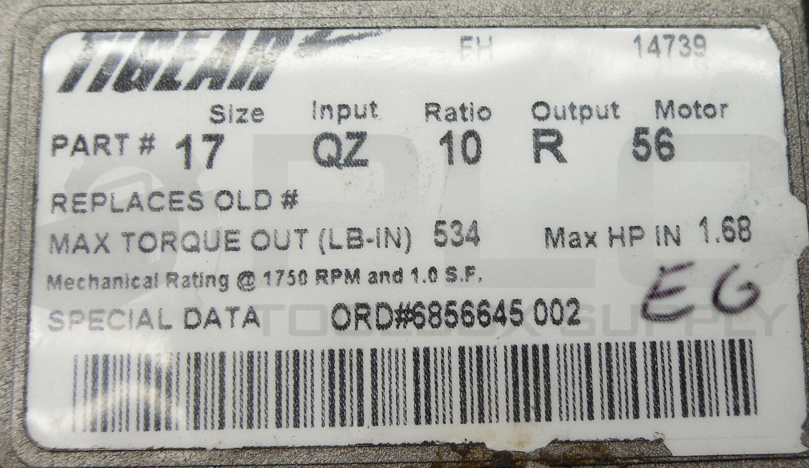 • NEW DODGE TIGEAR 17 GEAR REDUCER RATIO 10 MOTOR 56 INPUT QZ OUTPUT R 17QZ10R56