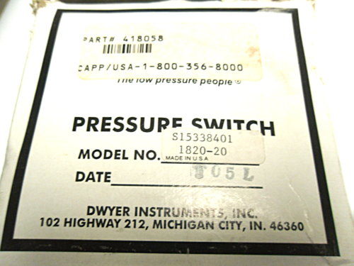 NEW DWYER 1820-20 S15338401 PRESSURE SWITCH