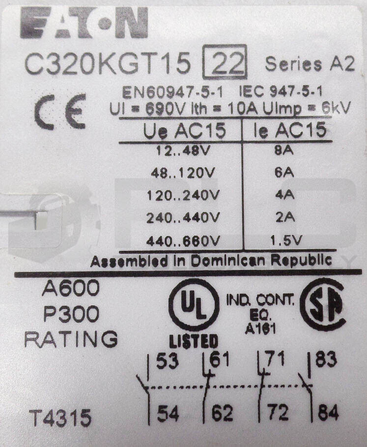 NEW EATON C320KGT15 /A2 AUXILIARY CONTACT 660V 8A