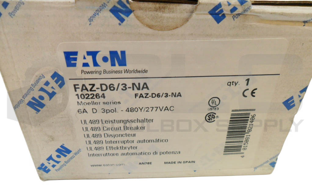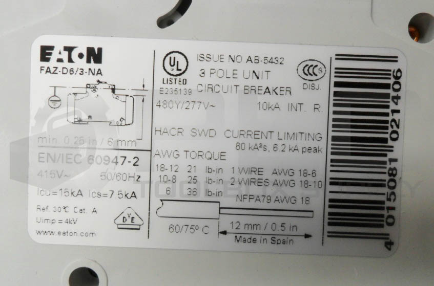 • NEW EATON FAZ-D6/3-NA CIRCUIT BREAKER 6A 3P 277-480VAC