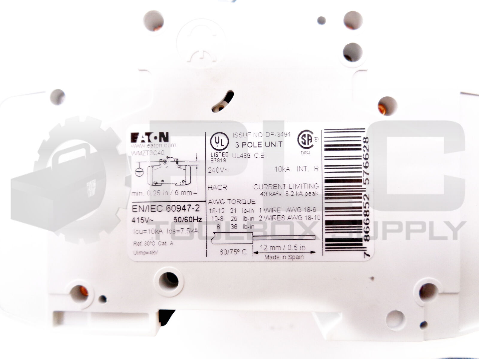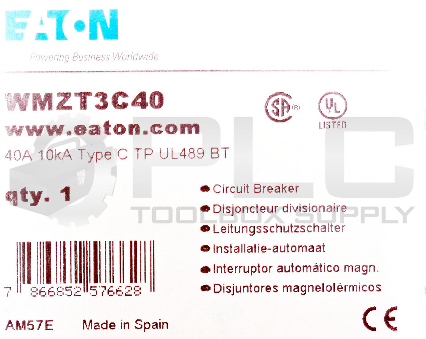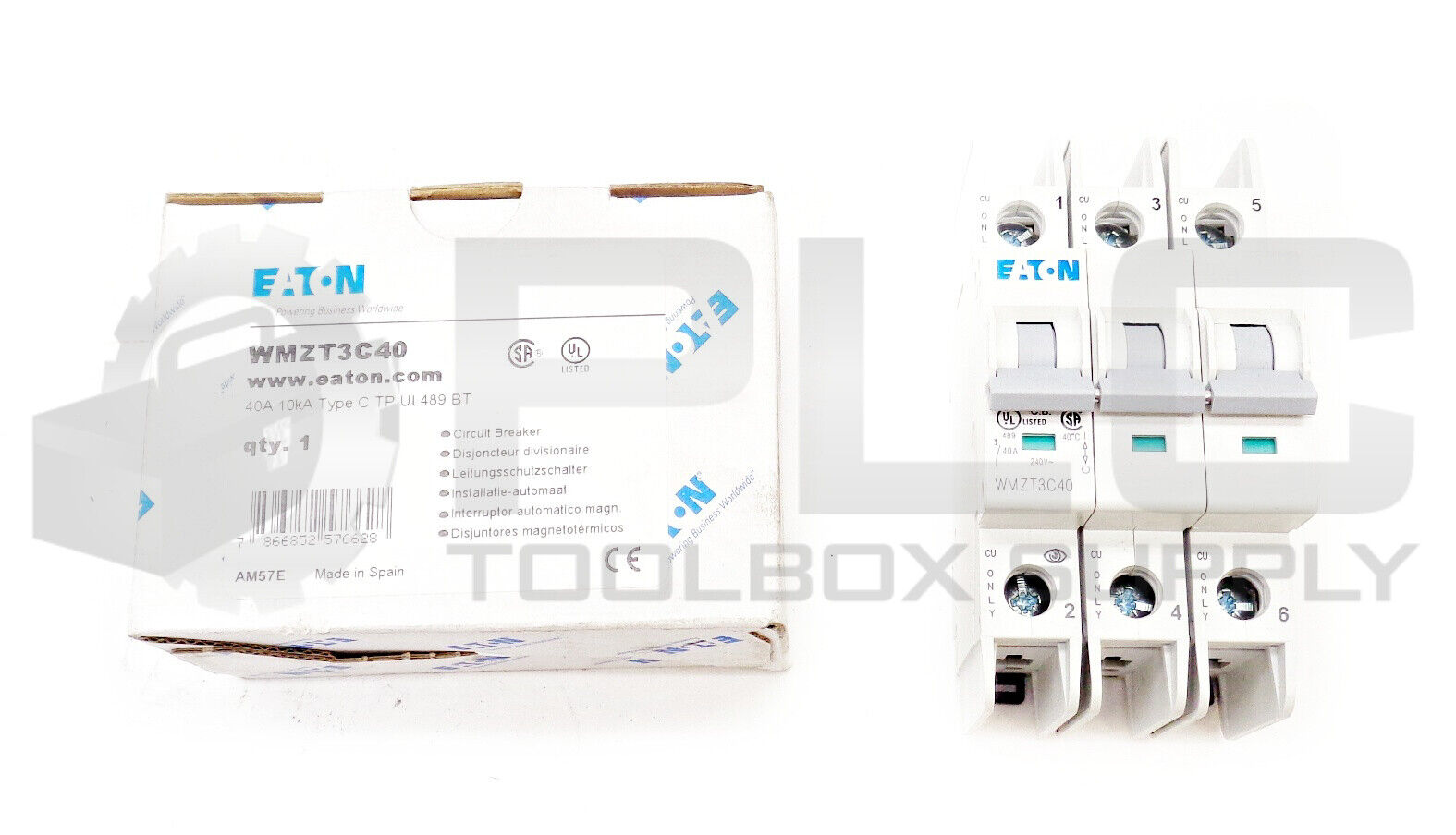 NEW EATON WMZT3C40 CIRCUIT BREAKER 40A 10KA TYPE C TP UL489 BT