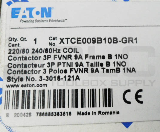 • NEW EATON XTCE009B10B-GR1 CONTACTOR 3P 50/60HZ 220-240V XTCE009B10B