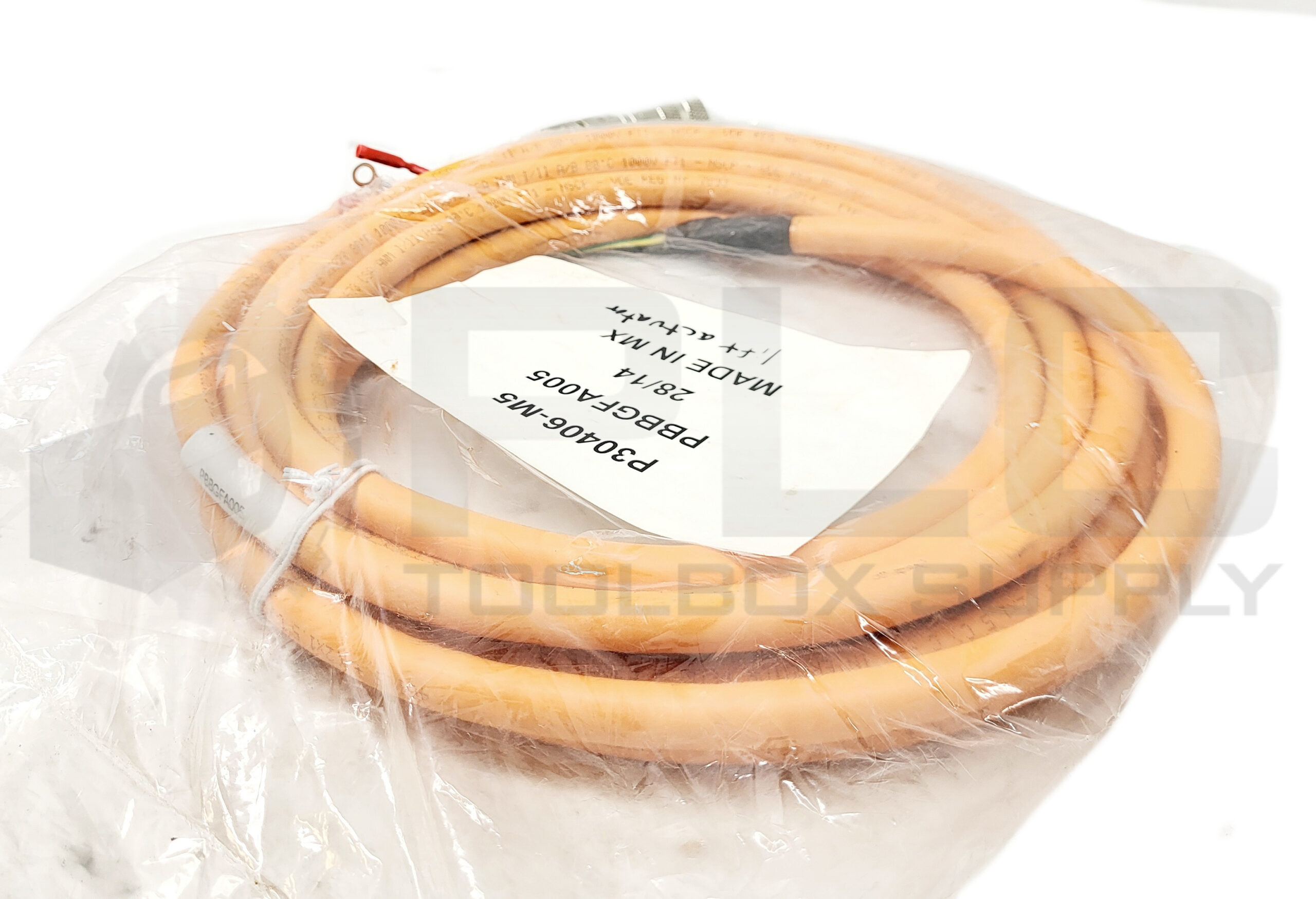 NEW EMERSON PBBGFA005 POWER CABLE W/ CONNECTOR END, W/ FLYING LEADS END, ORANGE