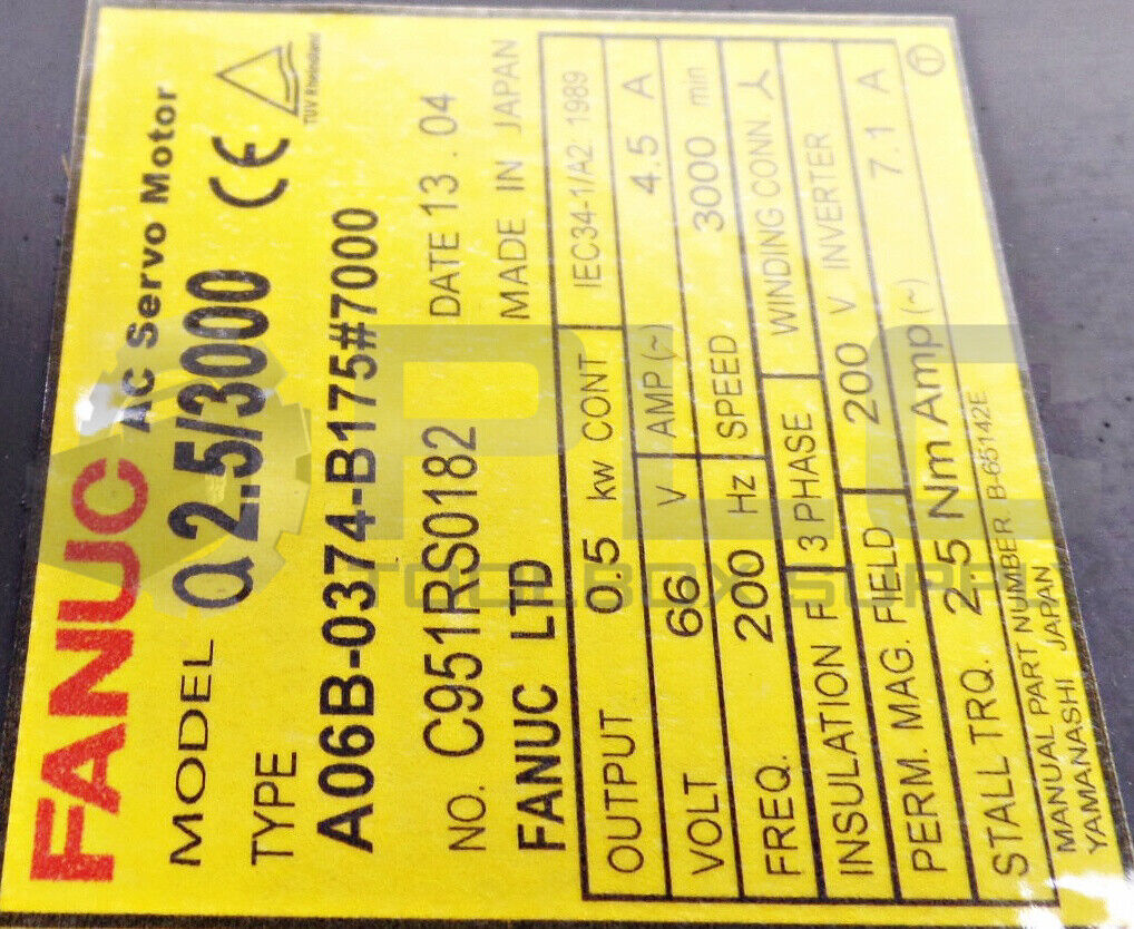 • NEW FANUC A06B-0374-B175 SERVO MOTOR 4.5AMP 3000RPM W/ A860-0360-T001 PULSECODER