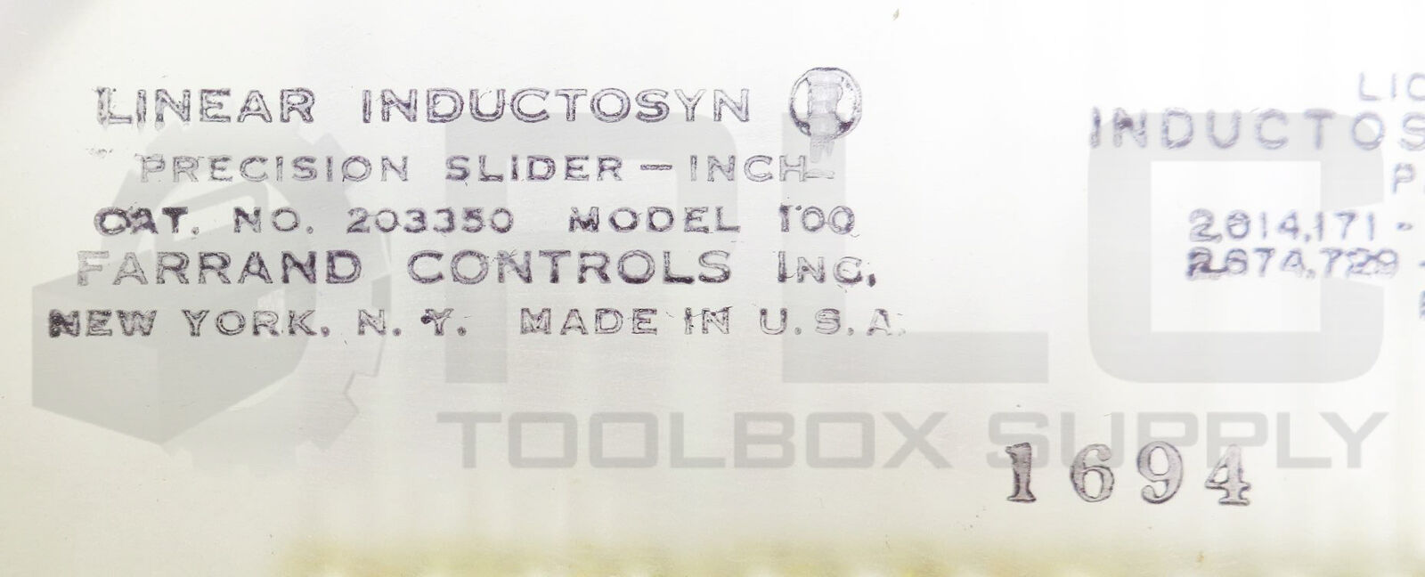 • NEW FARRAND 203350 PRECISION SLIDER LINEAR INDUCTOSYN MODEL 100