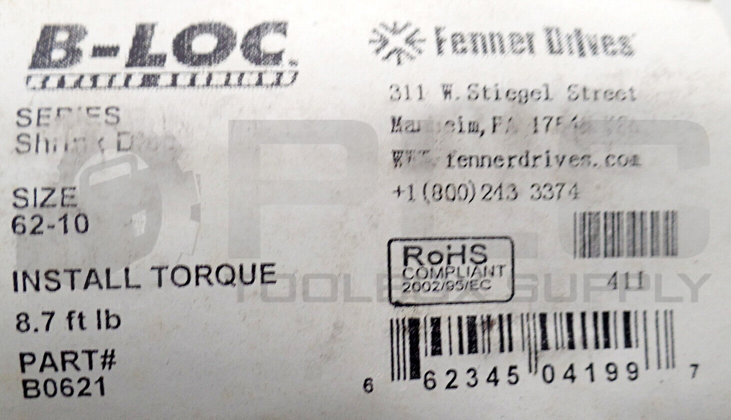NEW FENNER B0621 B-LOC SHRINK DISC, SIZE 62-10