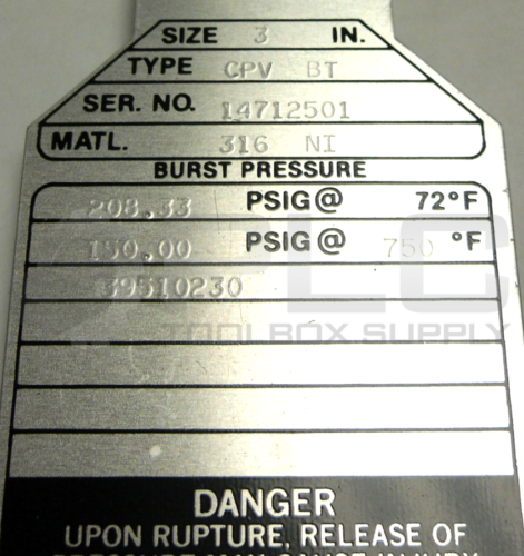 NEW FIKE CPV BT 3" RUPTURE DISC