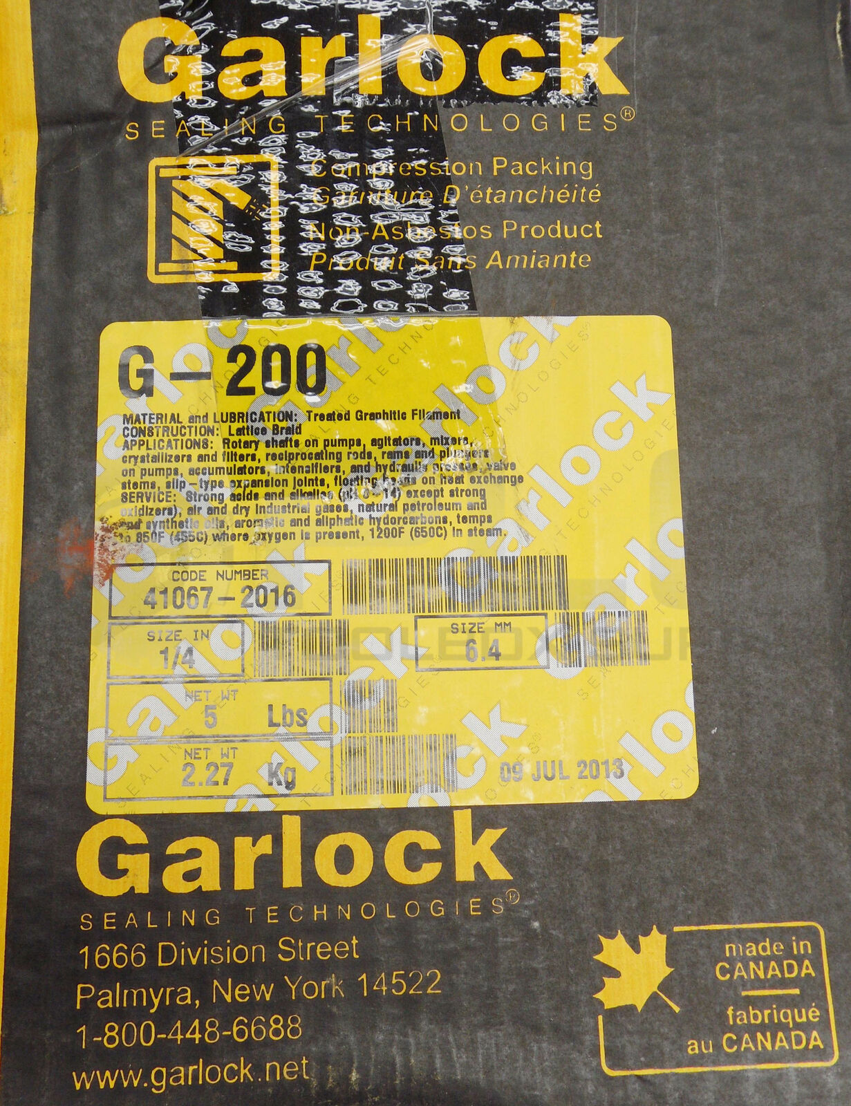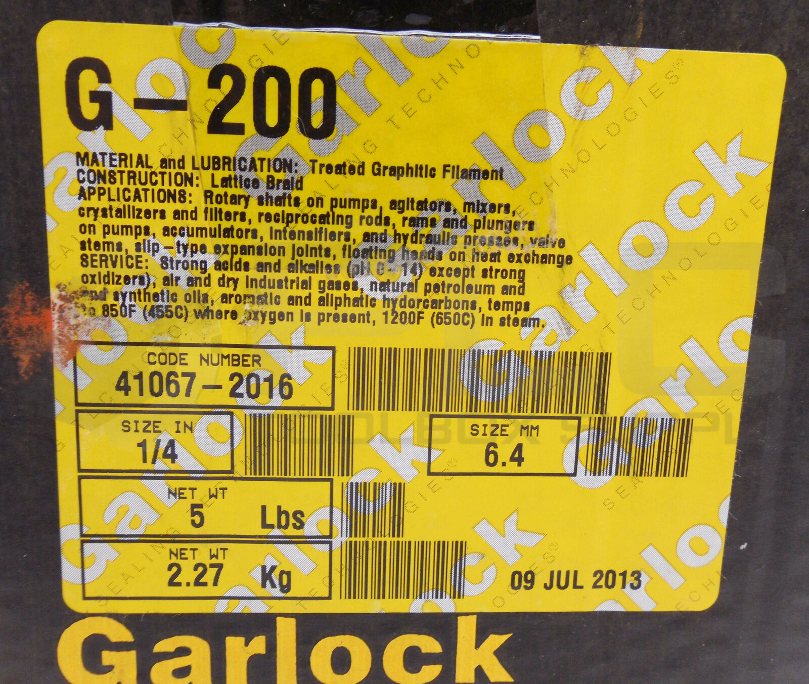 • NEW GARLOCK 41067-2016 G-200 COMRESSION PACKAGING SIZE 1/4INCH 5LBS