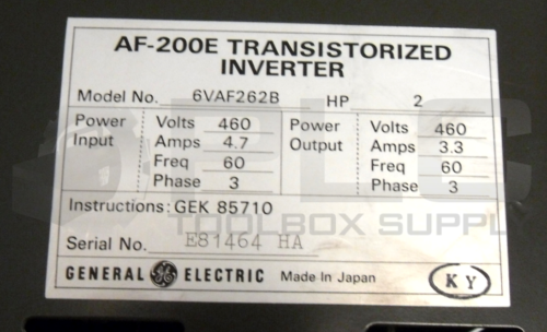 • NEW GENERAL ELECTRIC 6VAF262B TRANSISTORIZED INVERTER AF-200E 2/HP 460/VOLTS