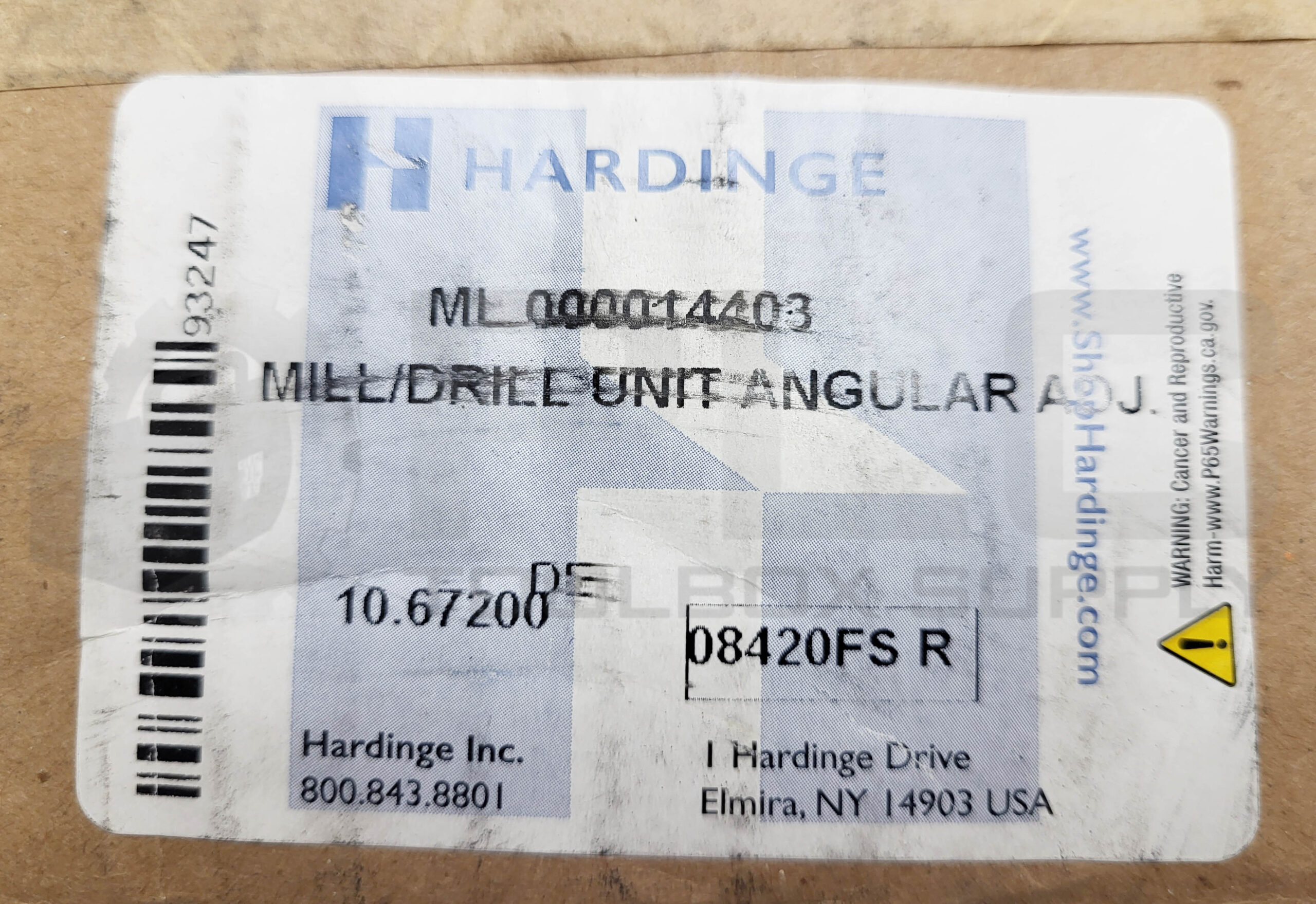 NEW HARDINGE ML 000014403 MILL/DRILL UNIT ANGULAR ADJ