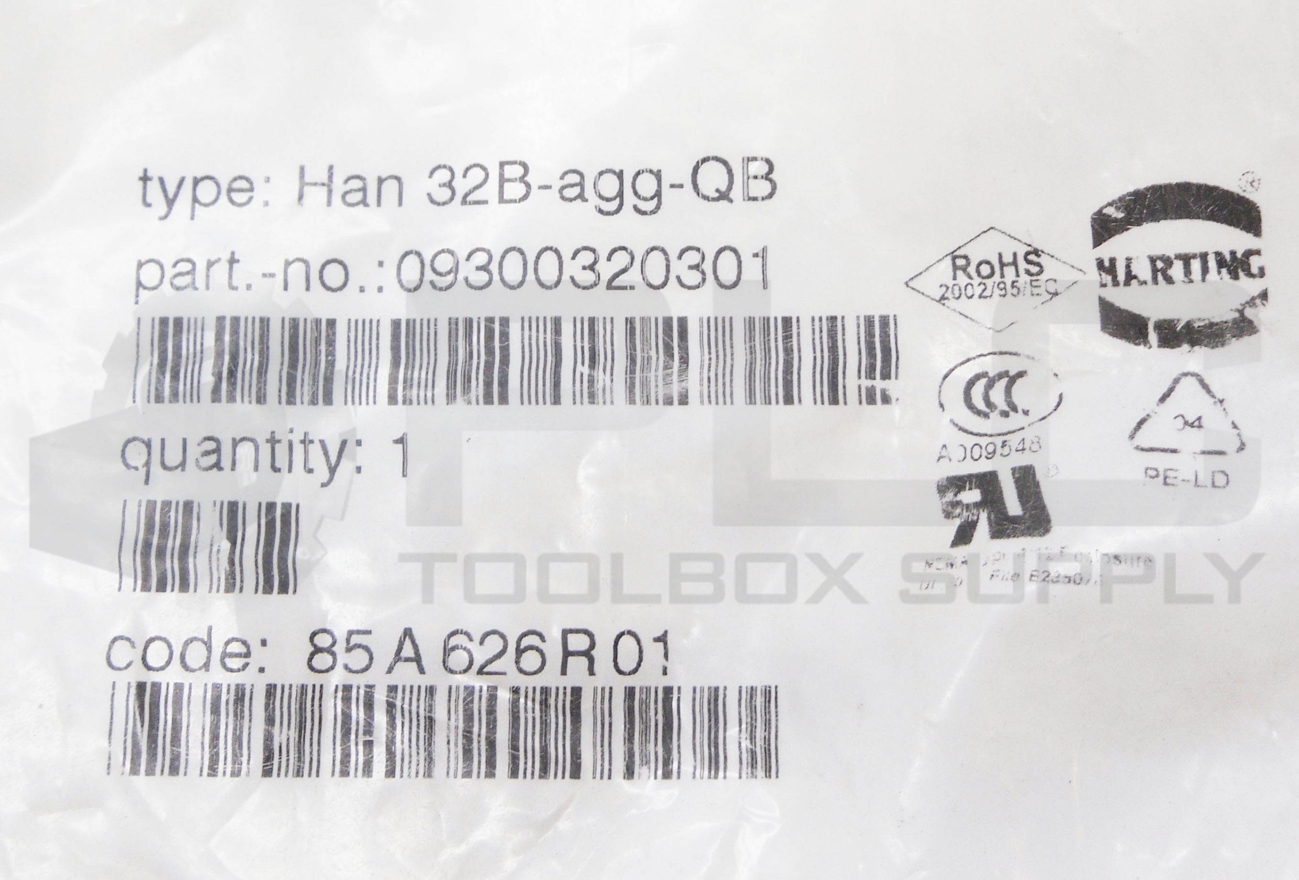 NEW HARTING 09300320301 HOUSING BASE HAN 32B-AGG-QB