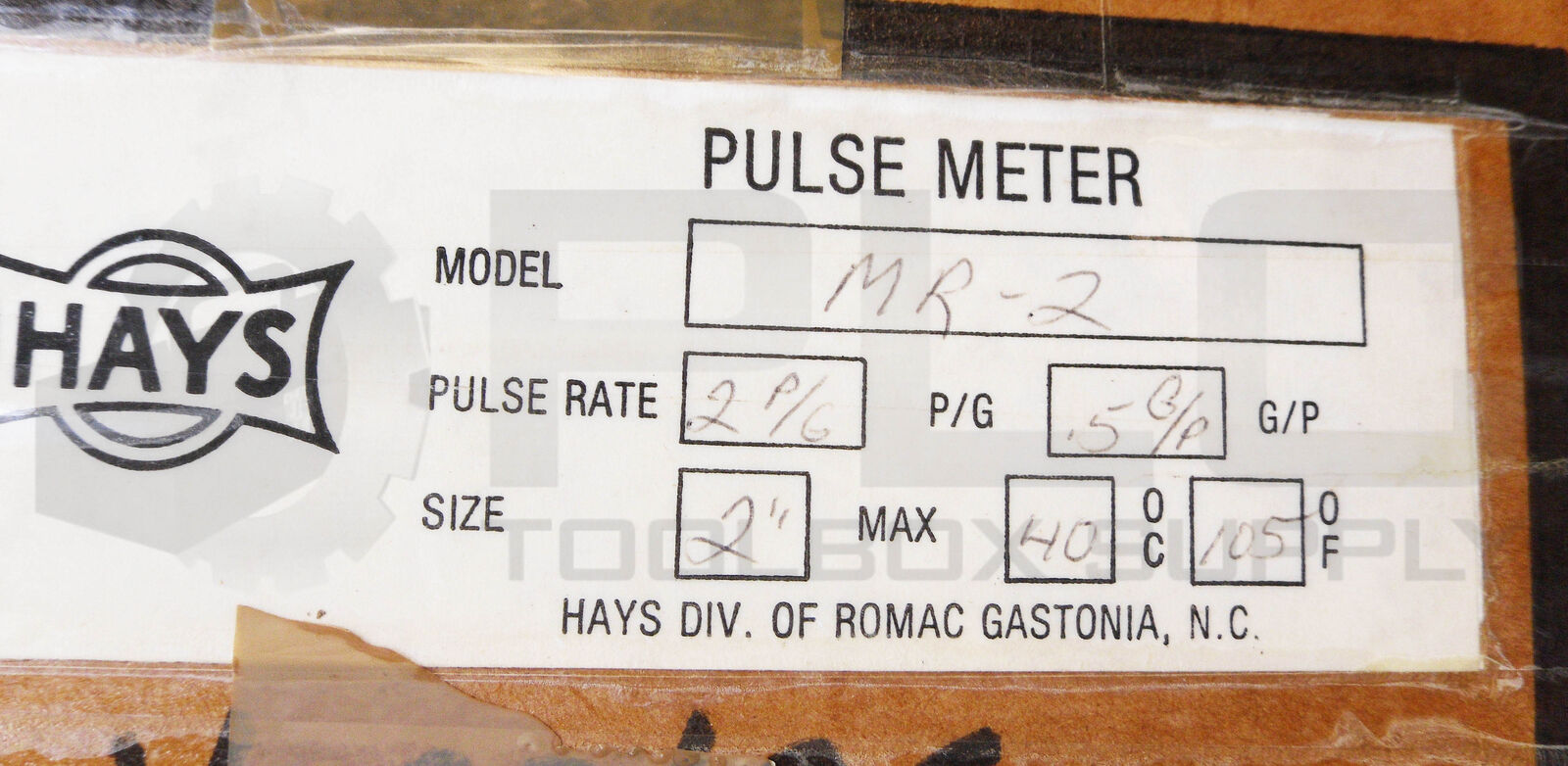 NEW HAYS MR-2 PULSE METER 2″ 105DEG F