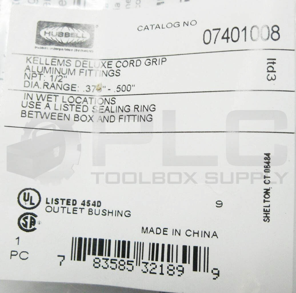 • NEW HUBBELL 07401008 DELUXE CORD GRIP, 1/2" NPT .375-.500" DIA.