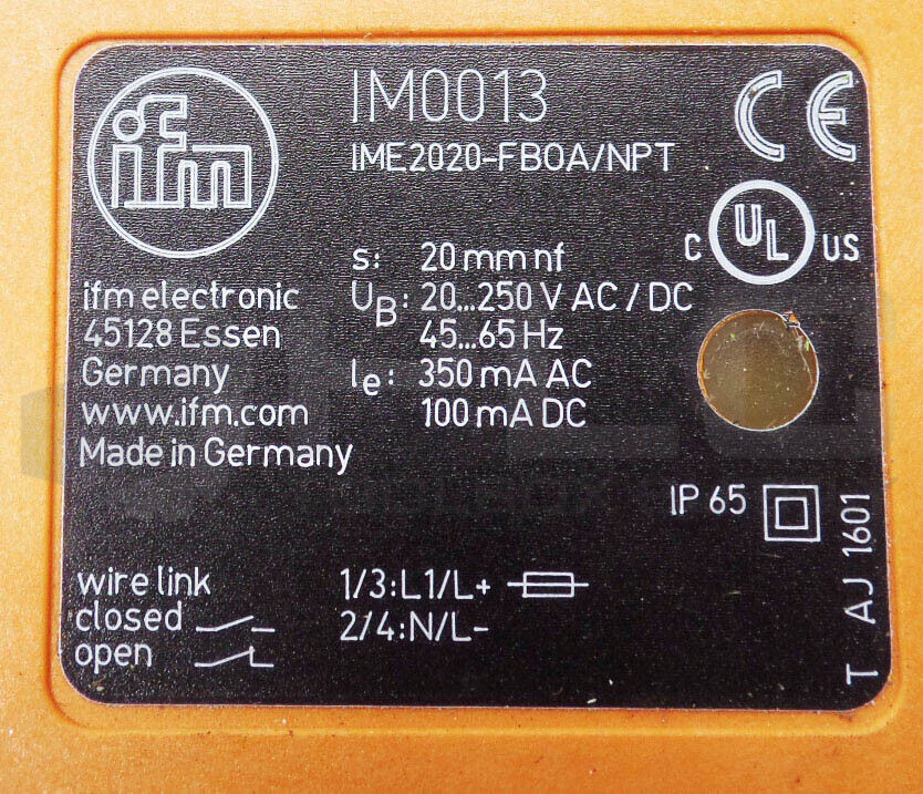 • NEW IFM ELECTRONIC IME2020-FBOA/NPT INDUCTIVE SENSOR 20-250V AC/DC IM0013
