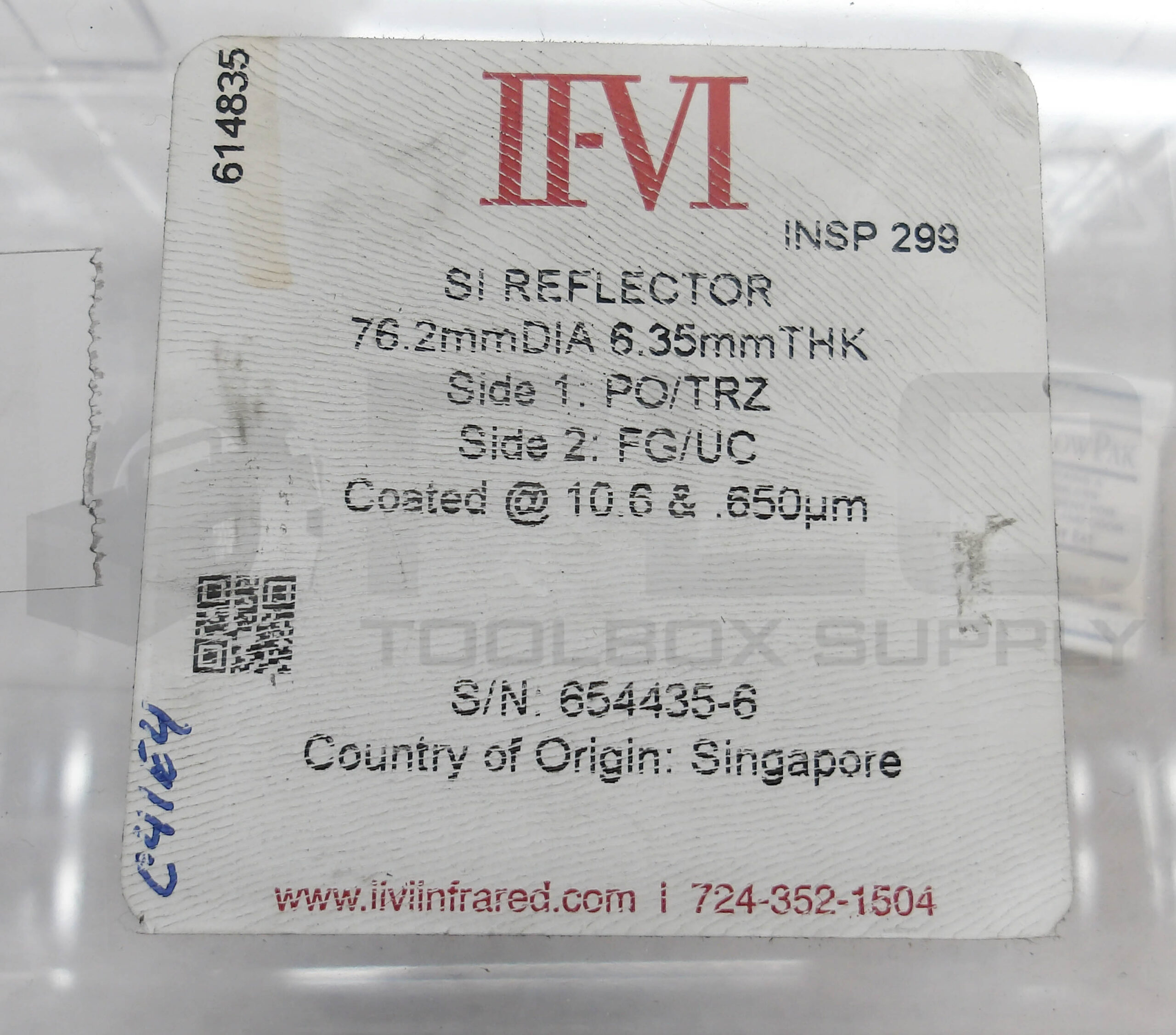 • NEW II-VI INFARED SI REFLECTOR 76.2MM DIA 6.35MM THK 614835