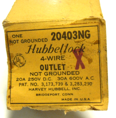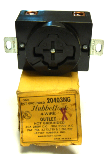 • NEW IN BOX HUBBELLOCK 20403 OUTLET 4 WIRE NOT GROUNDED 30A 600V 20403NG