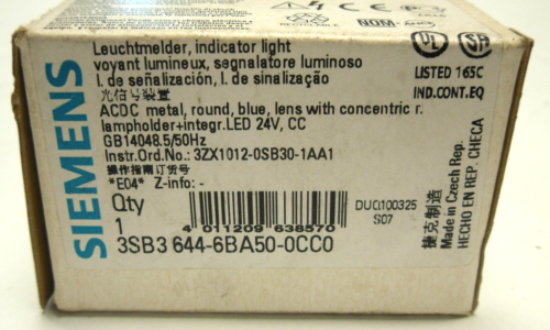 • NEW IN BOX SIEMENS 3SB3 644-6BA50-0CC0 BLUE INDICATOR LIGHT SWITCH