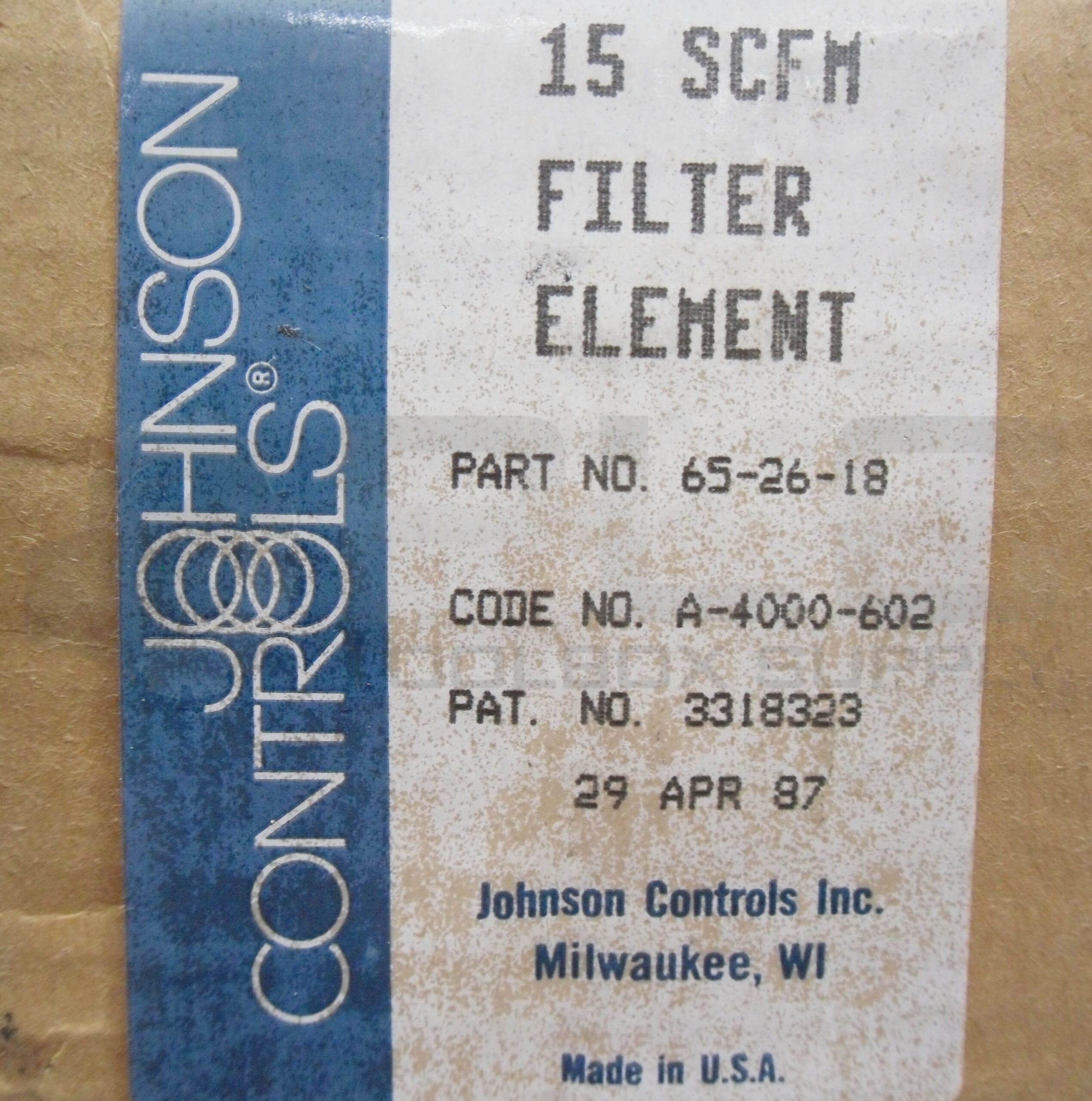 • NEW JOHNSON CONTROLS 65-26-18 15 SCFM FILTER ELEMENT A-4000-602