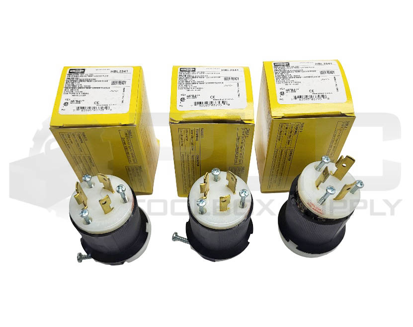 • NEW LOT OF 3 HUBBELL HBL2341 TWIST LOCK PLUG 20A 480VAC 2 POLE 3 WIRE