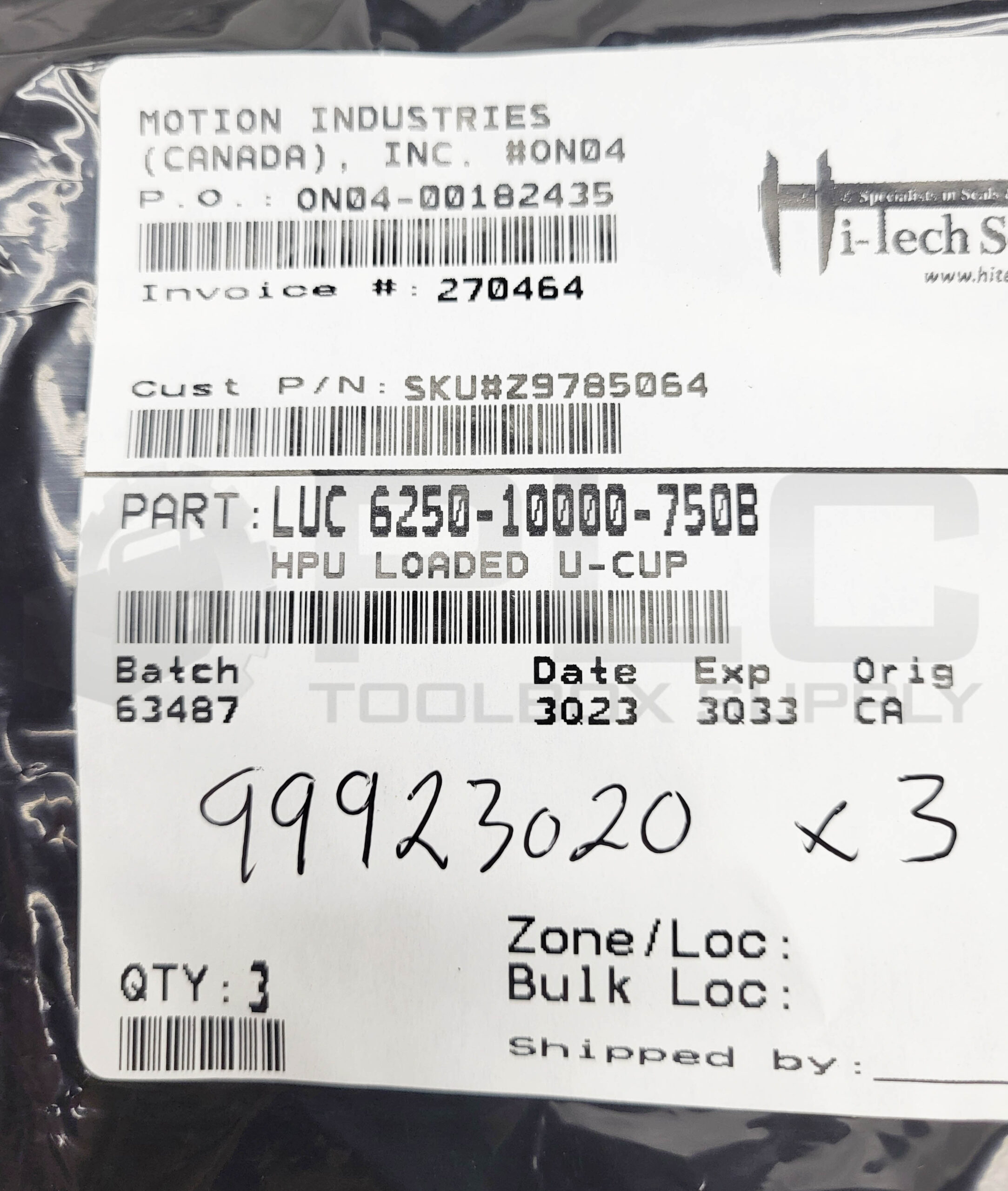 • NEW LOT OF 3 MOTION INDUSTRIES 6250-10000-750B O-RING