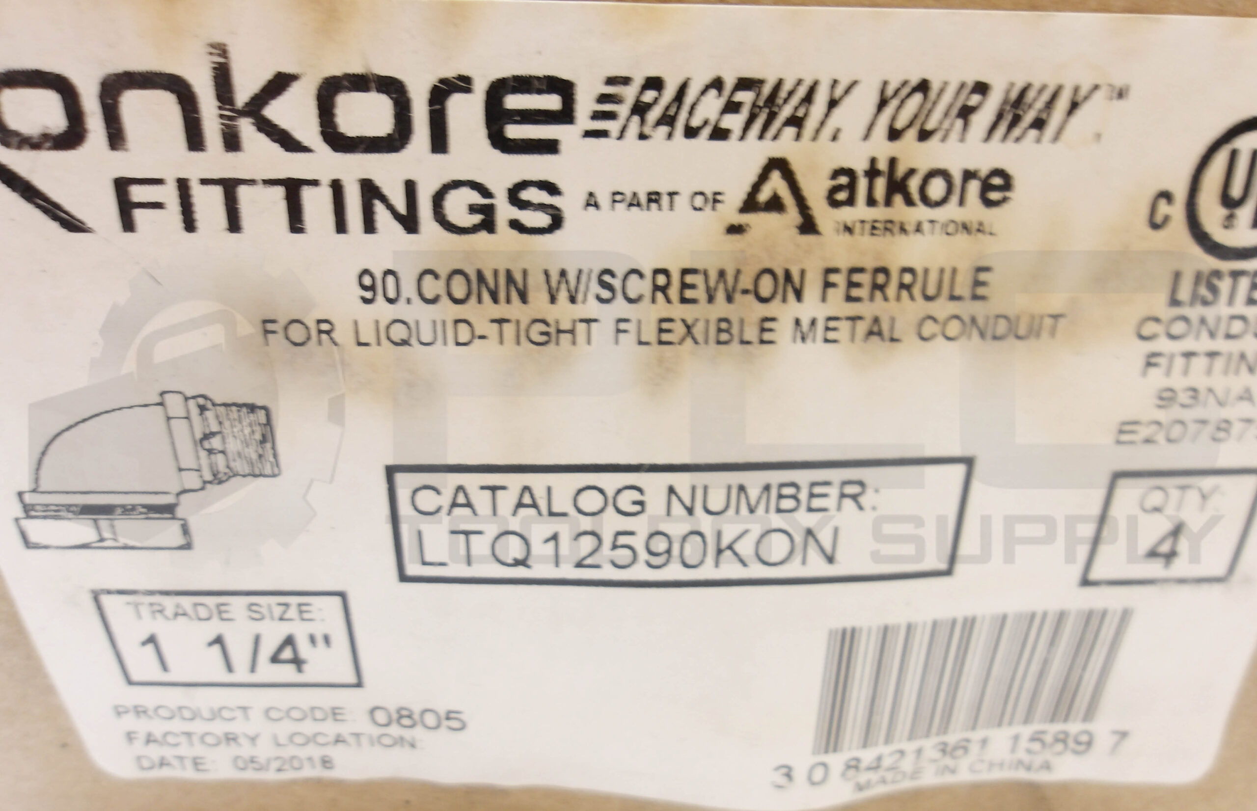 • NEW LOT OF 5 KONKORE LTQ12590KON 90. CONN W/ SCREW ON FERRULE 1 1/4 TRADE SIZE