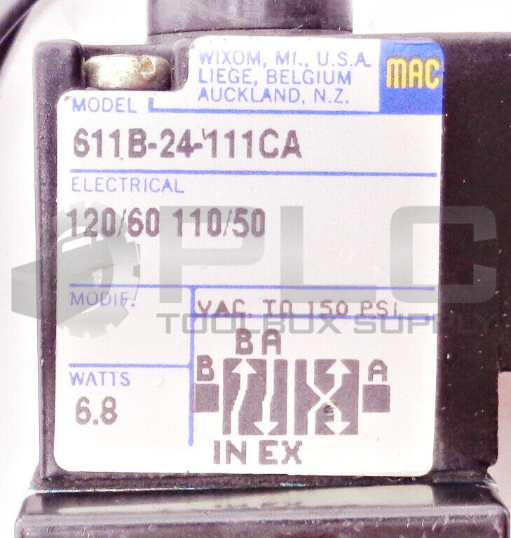 NEW MAC 611B-24-111CA SOLENOID VALVE 120/60 110/50 6.8W