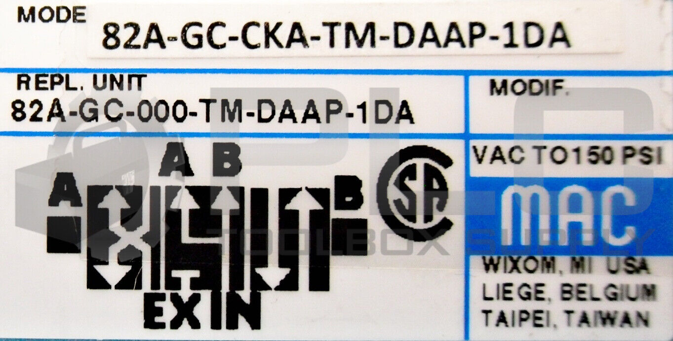 • NEW MAC 82A-GC-CKA-TM-DAAP-1DA VALVE w/ TM-DAAJ-DA SOLENOID & 82A-0A-CKA SUBBASE