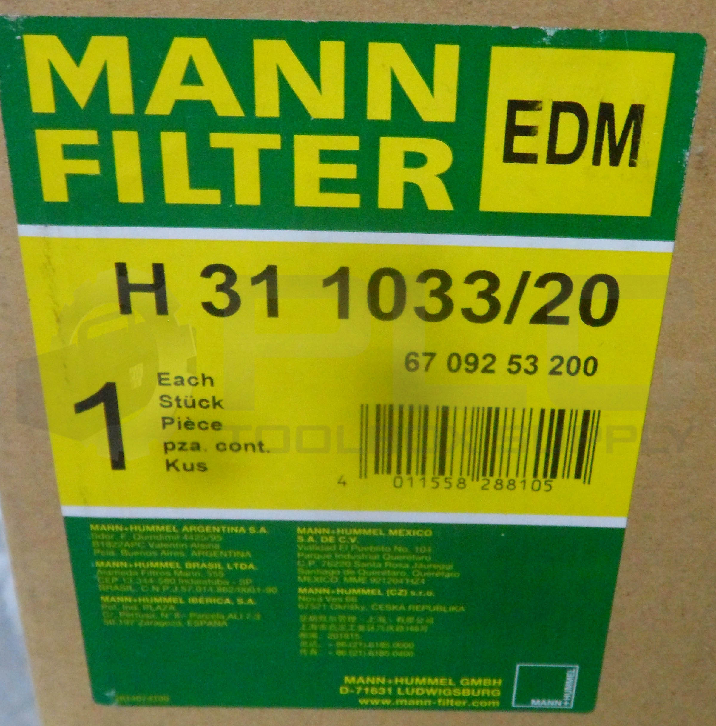 • NEW MANN FILTER H 31 1033/20 EDM FILTER 12″X20″