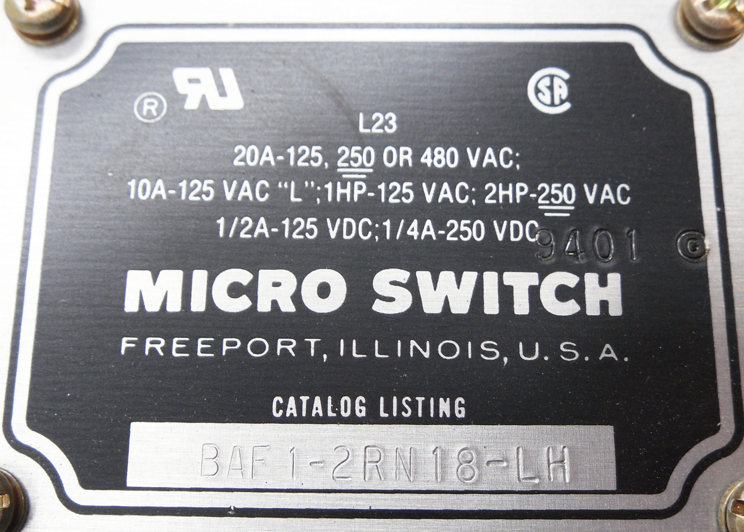 • NEW MICRO SWITCH BAF1-2RN18-LH LIMIT SWITCH 20A 480VAC 250VDC