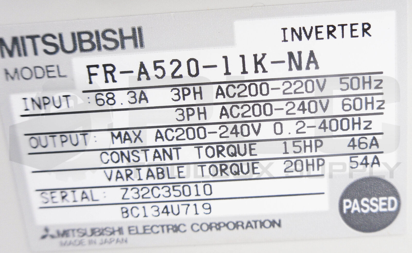 • NEW MISTUBISHI FR-A520-11K-NA INVERTER DRIVE 68.3A 3PH 200-220VAC 50/60HZ