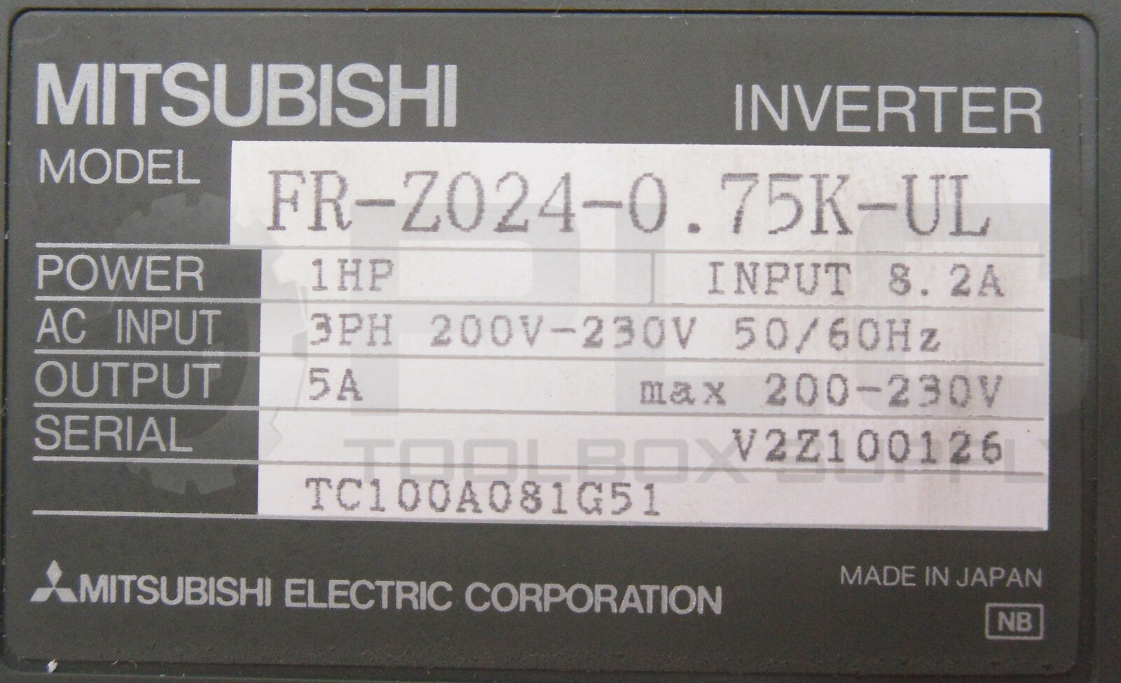 • NEW MITSUBISHI FR-Z024-0.75K-UL FREQROL INVERTER DRIVE 200-230V 50/60HZ
