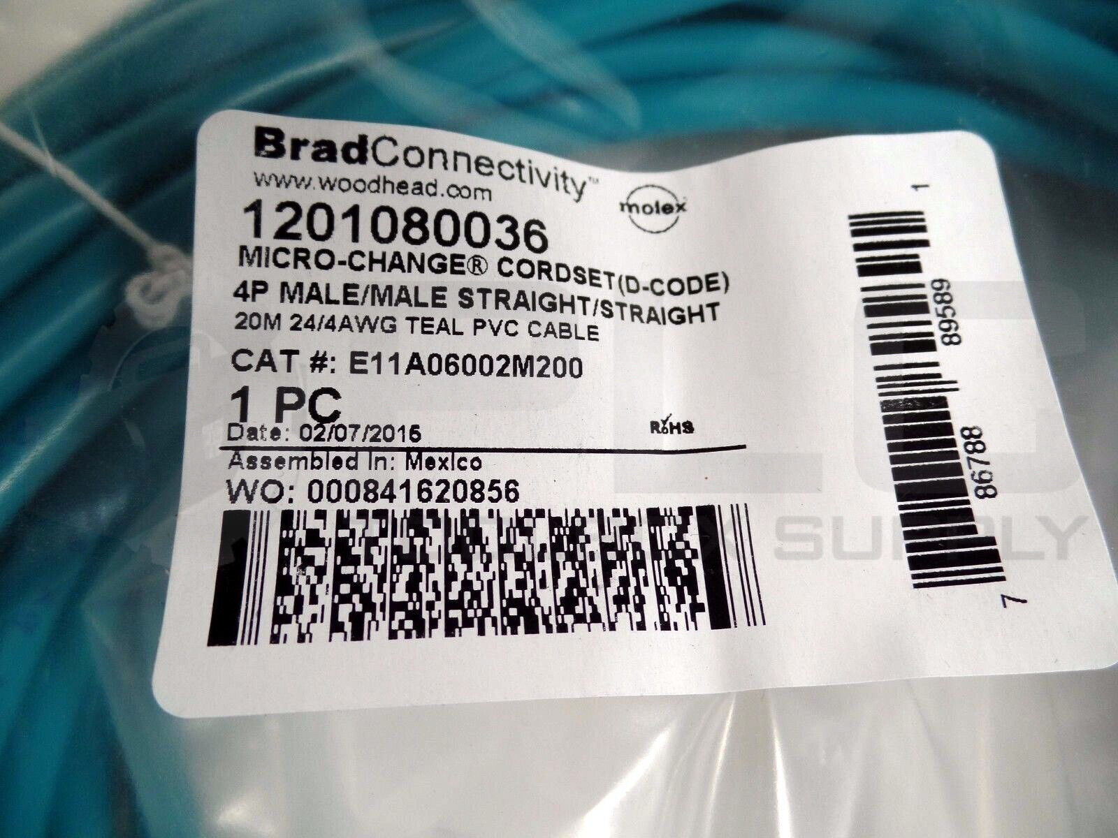 NEW MOLEX WOODHEAD E11A06002M200 4P 2PR 20M 1201080036