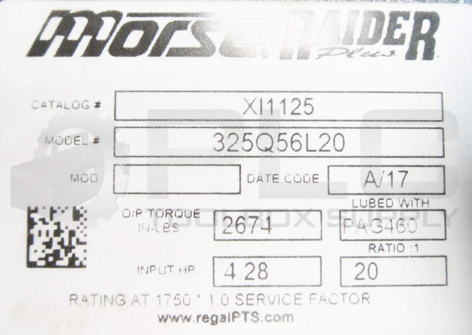 NEW MORSE 325Q56L20 RIGHT ANGLE WORM GEAR SPEED REDUCER 20:1 RATIO XI1125