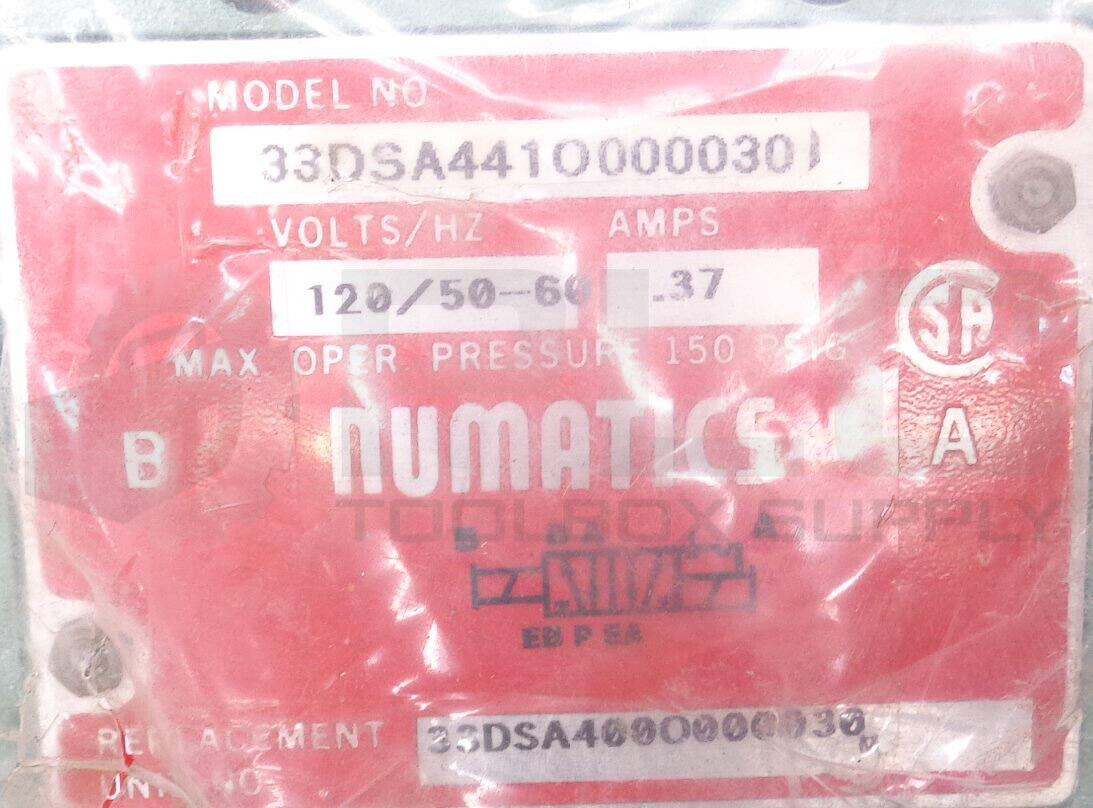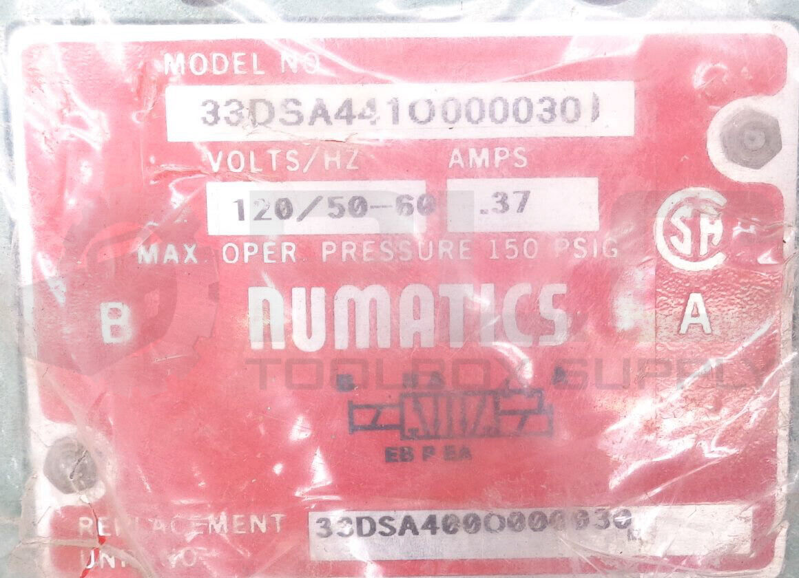 • NEW NUMATICS 33DSA441O000030 SOLENOID VALVE 120V 50/60HZ .37AMPS
