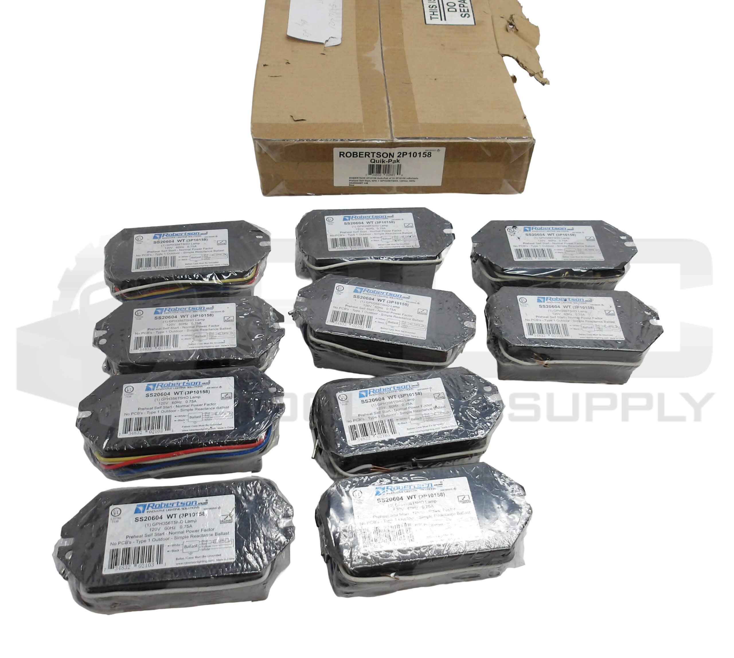 NEW PACK OF 10 ROBERTSON 3P10158 FLOURESCENT BALLASTS 120VAC 60HZ
