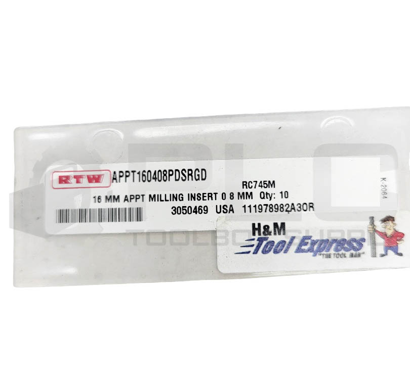 • NEW PACK OF 10 RTW APPT160408PDSRGD 16MM MILLING INSERTS 0 8 MM