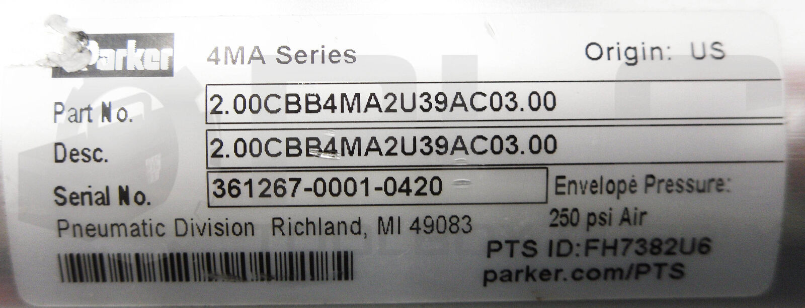 NEW PARKER 1H000170539 PNEUMATIC CYLINDER 2.50H2HLRVS19M1.000 3000PSI