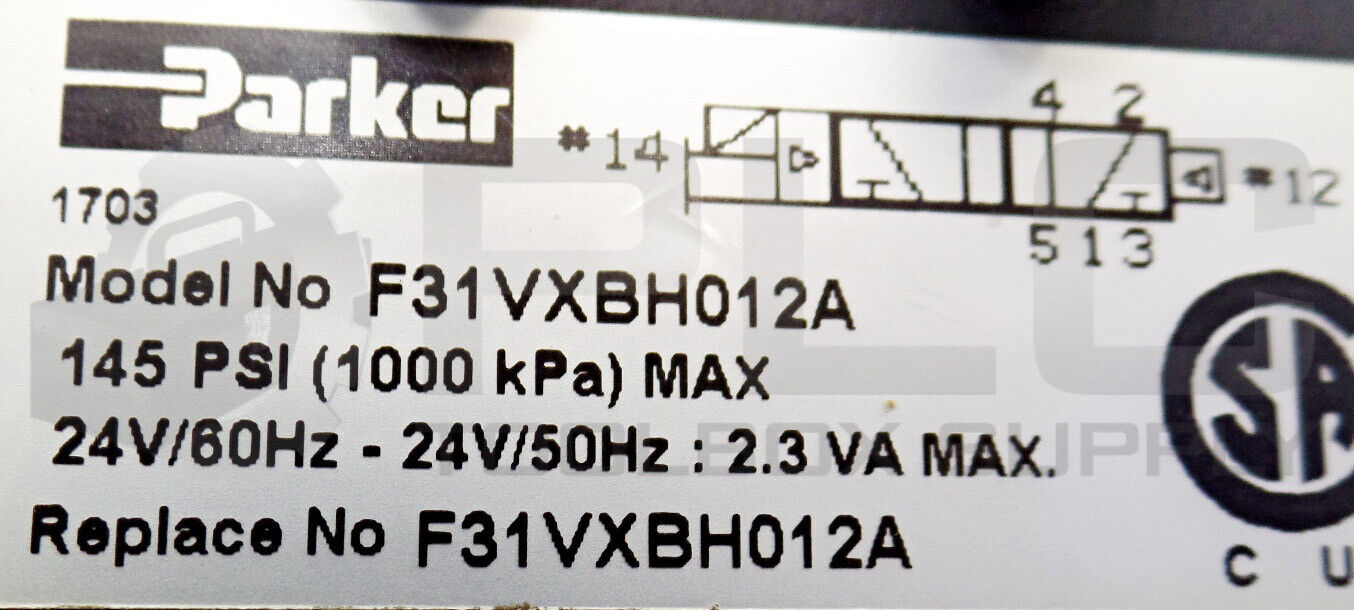• NEW PARKER F31VXBH012A VALVE, 145PSI, 24V/60Hz – 24V/50Hz 2.3VA