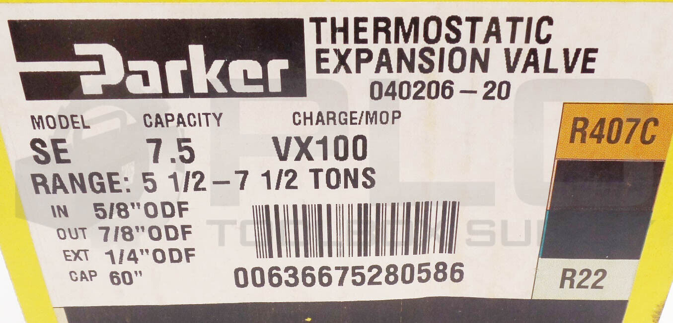 • NEW PARKER R407C THERMOSTATIC EXPANSION VALVE MODEL SE 5-1/2-7-1/2 TONS